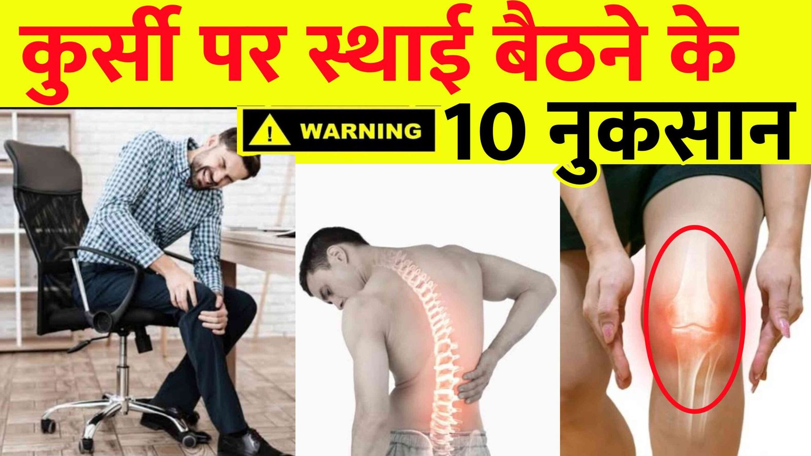 दोस्तो एक ही स्थान पर खाली बैठने की आदत या यू कहूं तो एक ही जगह पर स्थायी बैठे रहने की आदत कैंसर से भी ज्यादा जानलेवा हो सकती है। एक रिसर्च में डॉक्टरों ने यह पाया की बुढ़ापे में 90% होने वाले बीमारी स्थायी बैठक के कारण होता है। दोस्तो तेज धूप और भागदौड़ से बचने के लिए सिटिंग जाब तो कर लेते हो जिससे घंटो बैठकर एक ही स्थान पर स्थायी काम करना होता है। ये आदत केवल जाब वालो के लिए बस नही बल्कि जो लोग घर पर खाली बैठते है उनके लिए भी किसी खतरा से कम नहीं। दोस्तो हमे अपने दिनचर्या में स्थायी बैठक की अपने आदत को समय के साथ सुधारना जरूरी है, क्युकी इस आदत से भले अभी हमे कुछ न हो, लेकिन समय के साथ धीरे धीरे ये हमे गंभीर बीमारियों की तरफ धकेलता है। बाद में खाली बैठने की आदत से बुढ़ापे में कमर में दर्द, बदन दर्द, नशों में दर्द, कुहनियो में दर्द, अर्थारिस्ट, ज्वाइंडिस, शुगर बीपी और भी गंभीर बीमारियां हो सकती है। दोस्तो कई लोग काम को जल्दी खत्म करने की चक्कर में एक ही जगह पर बैठकर कई घंटे तक काम करते है, जिससे शरारिक मानसिक बहुत ही ज्यादा बुरा प्रभाव पढ़ता है। इस लेख में जानेंगे स्थायी बैठने से होने वाले 10 नुकसान।